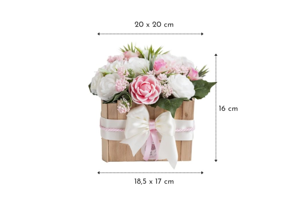 Romantická mýdlová kytice bílých a růžových pivoněk - kytice v dřevěném boxu