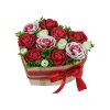 Romantická mýdlová kytice červených a červeno bílých růží ve tvaru srdce - kytice v dřevěném boxu. Je realistická, nevadne a krásně voní. Vhodné jako...